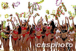 圖:二百多名模特到海南三亞向全國人民拜年