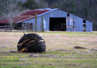 中新網(wǎng)2月2日電 北京時間2月1日晚上10時許,美國航天飛機哥倫比亞號在返航過程中于得克薩斯州上空失事墜毀。圖為失事后人們在地面發(fā)現(xiàn)的飛機殘骸。