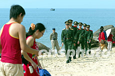 武警戰(zhàn)士春節(jié)期間在海南天涯海角風(fēng)景區(qū)加強(qiáng)巡邏,以確保游客安全。根據(jù)旅游部門公布的數(shù)據(jù),春節(jié)期間,海南三亞與黑龍江哈爾濱游客大量增加,再度成為冬季旅游的兩個(gè)熱點(diǎn)。作者:毛建軍