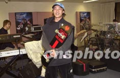 歌星陳奕迅2月5日在香港為即將舉行之個人演唱會進(jìn)行彩排,彩排期間亦將喜愛的滑板帶在身旁。鄧慶樂 攝