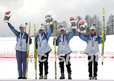 圖:中國隊(duì)獲得亞冬會(huì)冬季兩項(xiàng)女子接力金牌