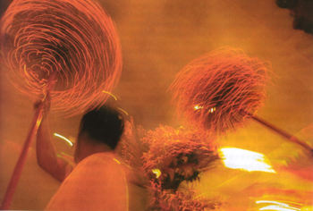 除通過拜年、團(tuán)拜、送賀卡等儀式增進(jìn)親情外,娛樂活動的增加也是一個全新生長點。古人守歲是在篝火邊進(jìn)行的,守歲過程中人們點起篝火,燃放爆竹,同時還要身披熊皮,跳起神秘狂野的儺舞,其目的就是為了驅(qū)鬼。但到了后來,神秘的儺舞漸漸從宗教儀式中解脫出來,變成了純粹的狂歡。在宋代的大都市中,春節(jié)期間還出現(xiàn)了最早的"舞場歌館",歡慶的因素得到了進(jìn)一步的增強(qiáng)。