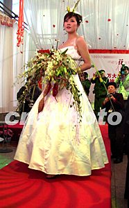 十五日,北京首屆花藝時(shí)裝秀在北京大森林花卉市場(chǎng)拉開(kāi)序幕,由歐美引進(jìn)的結(jié)合插花藝術(shù)和服裝設(shè)計(jì)為一體的時(shí)裝秀首次在京亮相。作者:廖文靜
