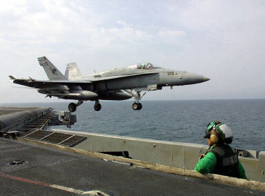 F/A-18“超級黃蜂”(SuperHornet)艦載多用途超音速戰(zhàn)斗機(jī),由美國麥克唐納·道格拉斯公司制造,1995年首次飛機(jī),裝備于“林肯”(USS Abraham Lincoln)號核動力航空母艦。
