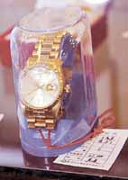 據(jù)說慕綏新當(dāng)時定制這套球桿的價格高達二點五萬美元,而今天這套球桿的起拍價僅為一千零八十元人民幣。這套球桿起拍開始后,隨著競標(biāo)人一次次加價,其價格就一路狂奔、節(jié)節(jié)攀升,現(xiàn)場氣氛極其熱烈。當(dāng)一位大連商人喊出十萬零一千元的高價后,一位董姓商人當(dāng)即喊出十二萬元的高價。這只十二高爾夫球桿最終以每桿一萬元的高價歸到了這位志在必得的董姓商人名下。據(jù)說這位行蹤神秘的董姓商人來自外地,高價買下這十二只球桿是要作為反腐敗教育的永久性紀(jì)念,他拍賣成功后便迅速離開現(xiàn)場,不肯接受記者采訪。當(dāng)劉志堅敲響今天上午最后一聲悅耳有力的拍賣槌時,今天上午的拍賣會以一百九十六點五萬元的最終成交額“一錘定音”。這比拍賣師事先估計的成交額高出六十多萬,包括兩套住宅、一個車庫、兩個“五愛市場”檔口以及高爾夫球桿、進口跑步機等七個運動器械共計十二個標(biāo)的順利拍賣成功。