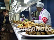 二月二十六日,北京清華大學荷園餐廳恢復正常營業(yè),一名餐廳工作人員戴著“聯(lián)防巡邏”的袖標為用餐師生服務。作者:杜洋