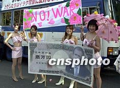 國際婦女節(jié)之際,日本眾多的女性參加了民間團(tuán)體在東京舉行的反戰(zhàn)游行,反對美國準(zhǔn)備對伊拉克發(fā)動戰(zhàn)爭。圖為別樣的反戰(zhàn)示威。作者:陶光雄