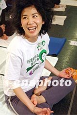 香港藝員吳君如,在三月八日香港舉行的“百人紓壓瑜伽日”活動(dòng)上苦練瑜伽功。錢興強(qiáng) 攝