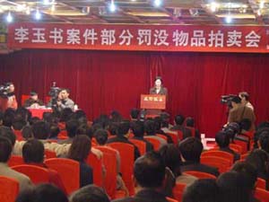 中新社成都三月九日電(記者楊杰)原四川省樂山市副市長(zhǎng)李玉書貪污、受賄案的部分罰沒物品九日在此間成都飯店公開拍賣,四十個(gè)標(biāo)的全部拍出,總金額達(dá)二百五十二萬七千多元人民幣。