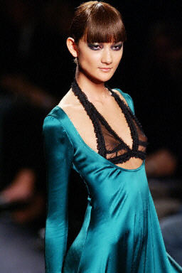 2003年3月10日,在法國巴黎舉行的2003至2004年秋冬時(shí)裝展上,模特現(xiàn)場展示了Yves Saint Laurent的新款服飾.