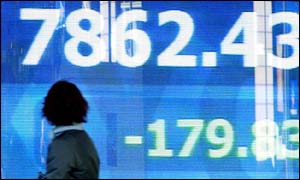 日經平均指數(shù)星期二以7,862.43點收盤,比前一天收盤時跌了179.83點,跌幅達2.2%,這是1983年1月以來的最低點。