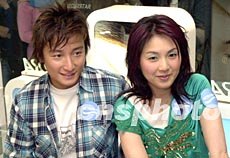 歌星楊千嬅、方力申3月12日在香港金鐘出席化妝品牌Biotherm美容專柜開幕,兩人均為該化妝品牌男女代言人。鄧慶樂 攝