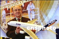 歐洲空中客車A380被稱為當(dāng)今世界最大的豪華客機(jī),上下雙層載客555人,將為北京奧運(yùn)會(huì)服務(wù)。圖為空中客車中國(guó)公司總裁馬樂(lè)德先生介紹發(fā)展遠(yuǎn)景。(資料圖片) 賈國(guó)榮 攝