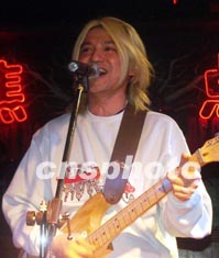 曾經(jīng)風(fēng)靡一時(shí)的香港Beyond樂隊(duì),15日晚首次在中國的西部蘭州焦點(diǎn)俱樂部登臺(tái)獻(xiàn)藝。圖為香港Beyond樂隊(duì)的前成員葉世榮在舞臺(tái)上激情高歌。作者:劉呈軍