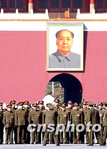 三月十七日在北京天安門廣場的大好春光里,全國人大解放軍代表團(tuán)在參加十屆全國人大一次會(huì)議第七次全體會(huì)議投票前合影。作者:賈國榮