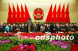 十屆全國人大一次會議十八日在國歌聲中閉幕。作者:毛建軍