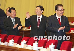 圖:李鵬、朱镕基、李瑞環(huán)出席人大閉幕會(huì)