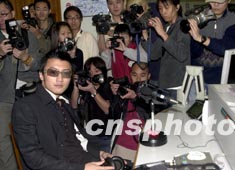 歌星謝霆鋒3月18日出席香港電臺(tái)節(jié)目"娛樂滿天星"訪問,吸引大批記者在直播室采訪拍照。鄧慶樂 攝