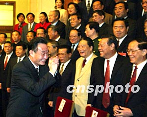 全國人大常委會(huì)委員長吳邦國,十九日在北京與出席十屆全國人大常委會(huì)一次會(huì)議的常委們合影留念。作者:滿會(huì)喬