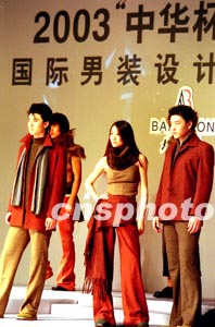 一名男模二十日晚在上海舉行的“中華杯”國際男裝設計決賽展示時尚男裝,此屆賽事為中國服裝設計界唯一的國際性男裝賽事。作者:劉殊瑾