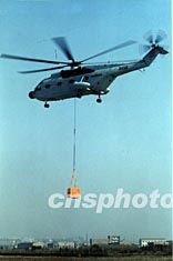 圖:中國海軍艦載直升機(jī)進(jìn)行海陸補(bǔ)給訓(xùn)練
