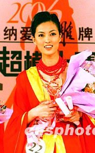 由廣東電視臺(tái)主辦、中國(guó)概念九八模特經(jīng)紀(jì)有限公司協(xié)辦的“納愛斯雕牌2003超級(jí)模特選拔賽”,三月二十二日晚在廣州舉行決賽。中新社傳真 錢興強(qiáng) 攝