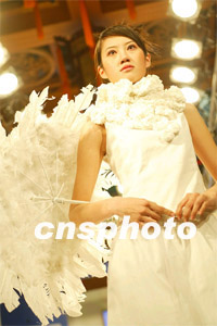 2003朱欽祺/諾帝卡設(shè)計(jì)創(chuàng)意基金獎頒獎典禮二十四日在北京舉行,來自深圳的設(shè)計(jì)師羅崢奪得白金獎,并獲得二萬五千美元的獎金。圖為羅崢設(shè)計(jì)作品展示。毛建軍 攝