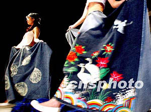 正在北京舉行的時(shí)裝周上,一向硬朗的牛仔服飾在韓國(guó)設(shè)計(jì)師的描畫(huà)下展現(xiàn)出絢爛而嫵媚的風(fēng)格。作者:鄭萍萍