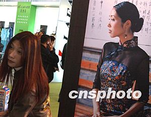 北京三月底舉行的國際時裝博覽會上,中國傳統(tǒng)的華服春裝依然走俏。作者:賈國榮