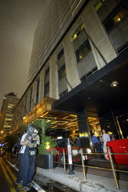 據(jù)香港媒體報道,香港著名影視歌星張國榮于4月1日晚6點(diǎn)40分左右從位于香港島中環(huán)的文華酒店(Mandarin Hotel)24層跳樓自亡。一個攝影師在Mandarin酒店外拍攝跳樓自亡現(xiàn)場。