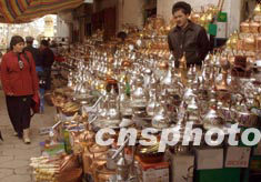 春季的新疆喀什出售各種金屬水具的市場一派繁榮,這里的維吾爾族人一直保持著用水壺洗手習慣。作者:宋吉河
