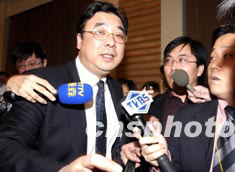 中國國務(wù)院新聞辦十日在北京舉行非典型肺炎新聞發(fā)布會,衛(wèi)生部副部長馬曉偉在發(fā)布會結(jié)束后被記者們追訪。作者:張煒
