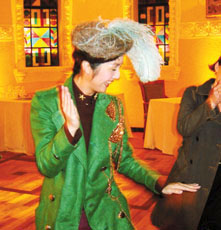 千嬅就笑言,自己因?yàn)樾r候?qū)W過太極,有功夫底子,因此學(xué)跳舞難不到她。她說自己很喜歡俄羅斯民族服裝,造型似足漫畫人物藍(lán)寶石王子。她戴了一頂有一條大羽毛的帽子,當(dāng)她與吳彥祖拍感情戲時,頭上的羽毛經(jīng)常打到他,令千嬅笑到無法再拍。最后工作人員命令千嬅不要再戴這頂帽在現(xiàn)場行來行去,否則全部人只會笑,不會工作。