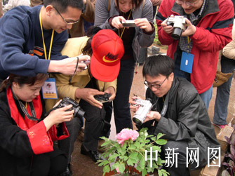 網(wǎng)絡(luò)媒體記者聚焦洛陽(yáng)牡丹。玉樹(shù) 攝
