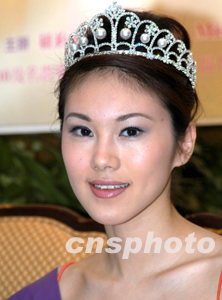 美東時(shí)間四月十五日,2003年紐約華裔小姐競(jìng)選宣布開始,決賽預(yù)計(jì)八月舉行。圖為出席新聞發(fā)布會(huì)的去年紐約華裔小姐劉美誼。作者:龔文謨