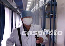 為嚴(yán)防非典型肺炎通過(guò)交通工具傳播,中國(guó)鐵路、交通部門要求客運(yùn)站和車船必須堅(jiān)持每天徹底打掃衛(wèi)生和消毒;全封閉空調(diào)客車在運(yùn)行過(guò)程中,空調(diào)系統(tǒng)要處于強(qiáng)制通風(fēng)狀態(tài)。中新社圖
