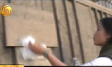 中國駐伊拉克大使館遭到暴徒兩度搶掠一空,香港鳳凰衛(wèi)視女記者隗靜星期二(15日)到大使館內(nèi),看到劫后的使館滿目瘡痍。隗靜已將兩面遭掠后留在地面上的中國國旗收好,準(zhǔn)備轉(zhuǎn)交給中國外交部,她更用僅有的半瓶礦泉水,將大使館門前的黃銅門牌擦拭干凈。
