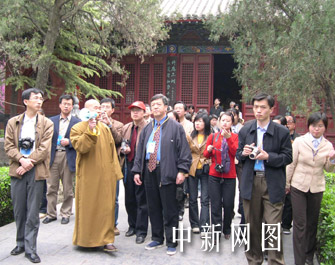 中新網(wǎng)洛陽4月17日電 記者近日隨“網(wǎng)上看河南”采風(fēng)團(tuán)參訪有“中國第一古剎”之稱的白馬寺。