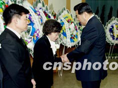 全國(guó)政協(xié)主席賈慶林二十一日在北京八寶山,悼念逝世的前臺(tái)盟中央主席蔡子民先生,并向蔡先生的親屬表示慰問(wèn)。作者:鄭萍萍