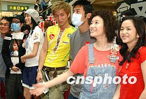 香港歌手余文樂出席“一杯涼水送暖大行動”。作者:錢興強