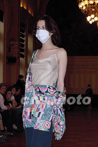 圖:巴黎時(shí)裝展 模特戴上防“非典”口罩