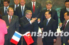 中國國務院總理溫家寶與法國總理拉法蘭四月二十五日在北京人民大會堂舉行會談,并出席雙方簽署關于中國購買三十架空中客車飛機的總協(xié)議簽字儀式。作者:毛建軍