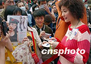 香港歌手張(焱加木)悅為歌迷簽名。作者:錢興強