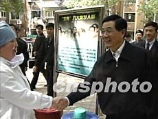 官方消息說(shuō),5月1日,胡錦濤和隨行的中共中央政治局委員、國(guó)務(wù)院副總理兼衛(wèi)生部部長(zhǎng)吳儀等在天津檢查防治非典型肺炎工作的落實(shí)情況,親切慰問(wèn)為防治疫病辛勤工作的廣大干部群眾、醫(yī)務(wù)工作者和科研人員。