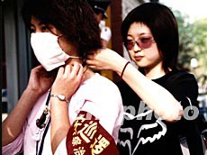 圖:北京廣播學院學生奔赴校園防非典第一線