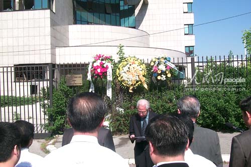 中新網(wǎng)5月7日電 人民網(wǎng)貝爾格萊德消息:中國(guó)駐塞爾維亞和黑山大使館全體工作人員、中國(guó)駐塞黑全體新聞工作者和旅南華人華僑代表今天上午在中國(guó)駐南大使館館舍廢墟前集會(huì),沉痛哀悼在1999年美國(guó)轟炸中犧牲的3名中國(guó)烈士。