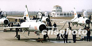 駐守黃海地區(qū)的海軍航空兵殲擊機(jī)部隊(duì),在春季超低空攻擊與截?fù)粲?xùn)練中,戰(zhàn)機(jī)編隊(duì)快速加油提高戰(zhàn)斗力。汪漢宗 攝