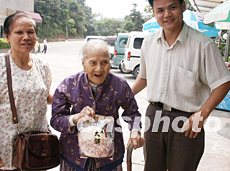 據潘伯介紹,他母親生于一八八五年十一月十二日,生育了兩男兩女,潘老伯排行最小,兄妹四人只有他一人還健在。潘老伯生育了七個子女,目前共有十二個孫子。其姐姐的孫子也已娶妻生子,母親已有玄外孫了,F在,政府每年都組織醫(yī)生上門為老人體檢,醫(yī)生說阿婆身體不錯,還能再長壽多年。