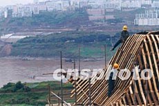 長(zhǎng)江三峽庫(kù)區(qū)張飛廟搬遷在建,將在七月一日開放。云陽縣新建的張飛廟,是在舊廟位置沿江上溯32公里處的南岸石盤鎮(zhèn)龍安村獅子巖下建成,其基址保持了原廟依山臨江及與縣城隔江相望的特征。作者:孫榮剛
