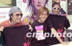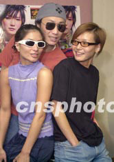 歌星盧巧音5月13日在香港為即將舉行的個人演唱會進行彩排,歌星好友鄭中基及何超儀向盧巧音搞笑送上內(nèi)褲,要求一向打扮前衛(wèi)的盧巧音于演唱會上作性感演出。中新社傳真 鄧慶樂 攝
